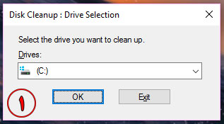 قدم اول – در منوی استارت عبارت Disk Cleanup را جستجو کنید و یا در کادر Run (ترکیب کلید ویندوز + R) دستور CleanMgr را وارد و اجرا کنید. در کادر Drive Selection درایوی که می خواهید عملیات پاکسازی بر روی آن انجام شود را از لیست بازشونده انتخاب کنید. در اینجا باید درایوی که ویندوز قدیمی در آن نصب بوده و پوشه Windows.old در آن قرار دارد (عموماً درایو C) را انتخاب و OK کنید.