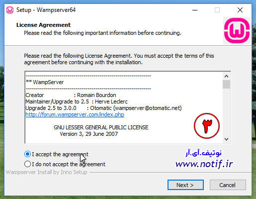ابتدا فایل نصبی آخرین نسخه WAMPSERVER مناسب با معماری سیستم خود را از وب سایت رسمی آن دانلود کنید. لینک کمکی