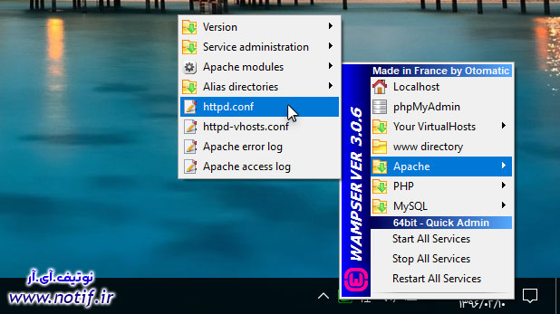 راه ساده تر باز کردن فایل httpd.conf روش زیر است: